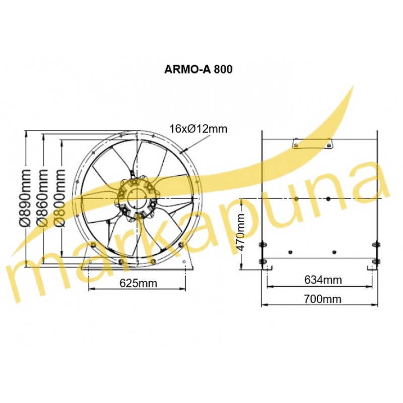 BVN Bahçıvan ARMO-A 800-6 / 7,50 4A Trifaze Aksiyel Basınçlandırma Fanı