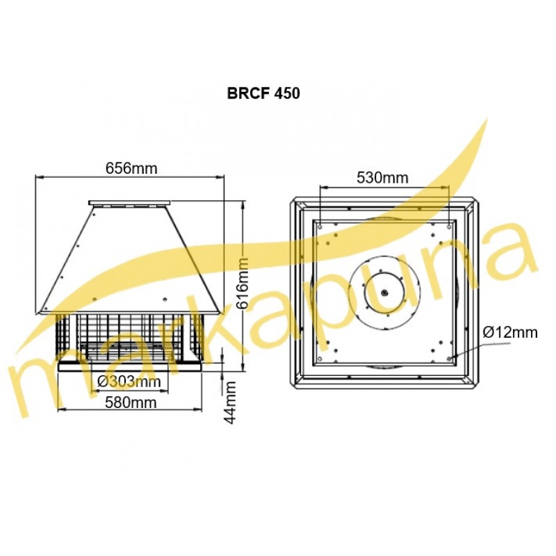 Bahçıvan Ters Hava Akımlı Yatay Atışlı Radyal Çatı Fanı BRCF 450T