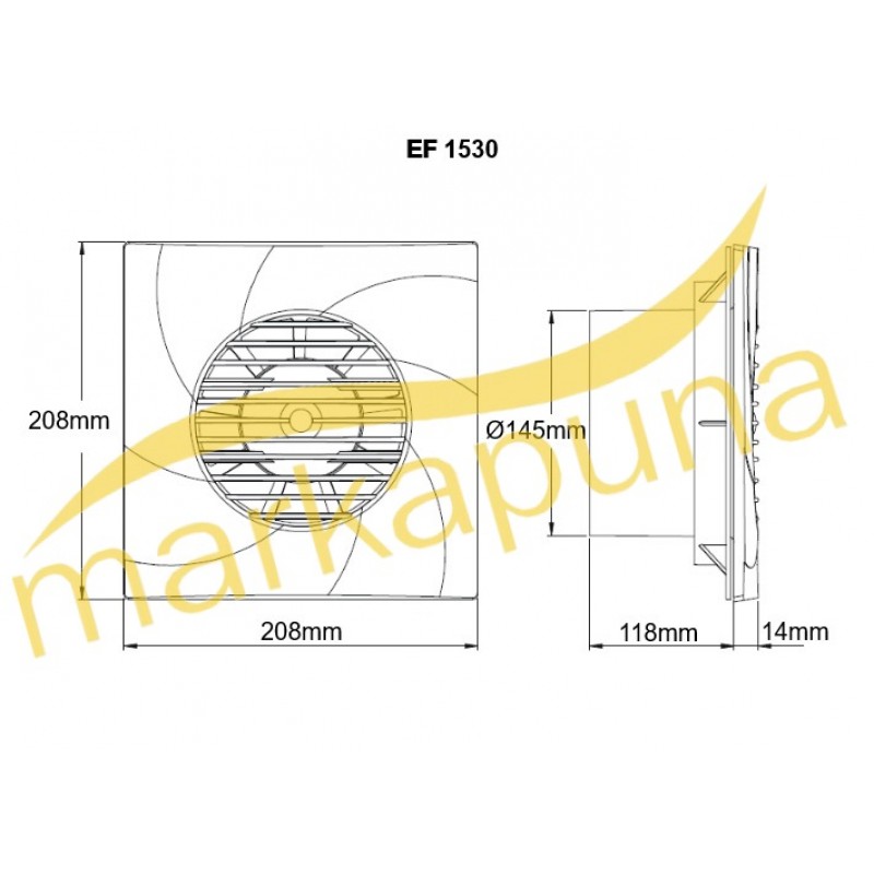 BVN Bahçıvan EF 1530 Dekoratif 15 cm 300 m³/h Plastik Banyo ve Tuvalet Aspiratörü
