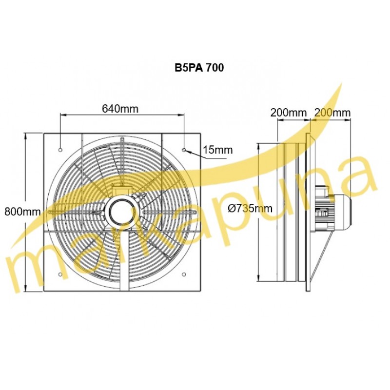BVN Bahçıvan B5PAT 700 Trifaze Kare Kasalı 70 cm 14000 m³/h Plastik Pervaneli Sanayi Aspiratörü