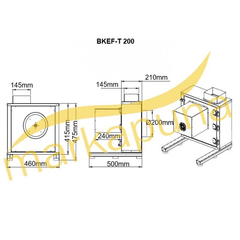 BVN Bahçıvan BKEF-T 200 T 380 Volt Trifaze Öne Eğimli 1750 m³/h Mutfak Egzoz Fanı