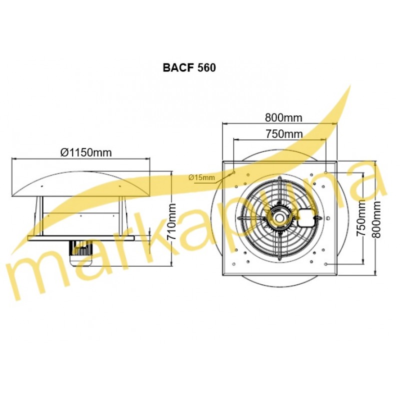 Bahçıvan Yatay Atışlı Aksiyel Çatı Fanı BACF 560T