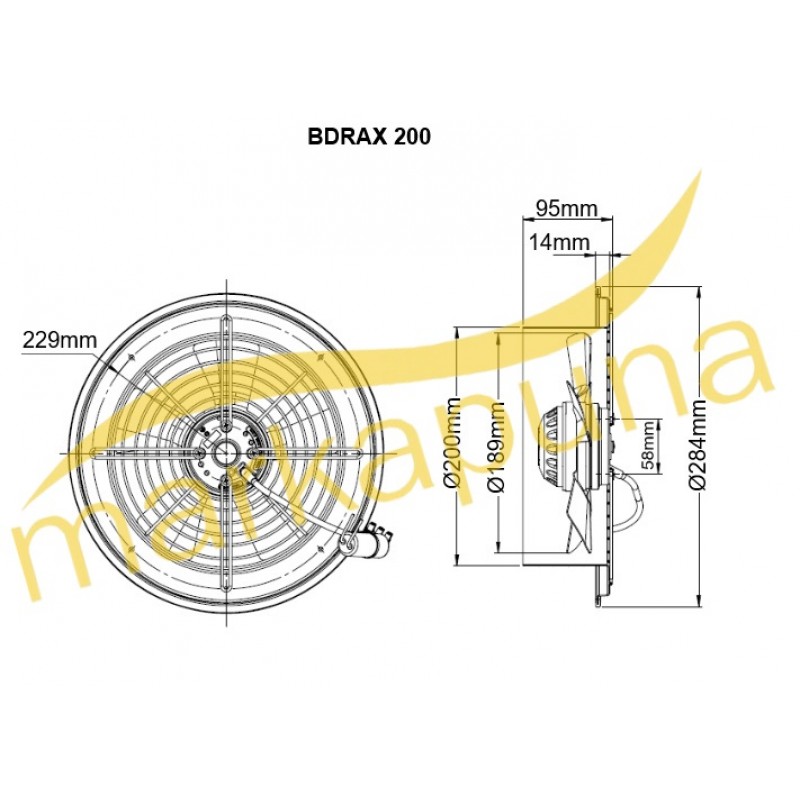 BVN Bahçıvan BDRAX 200-4K 20 cm 407 m³/h Monofaze Yüksek Devirli Aksiyel Fan