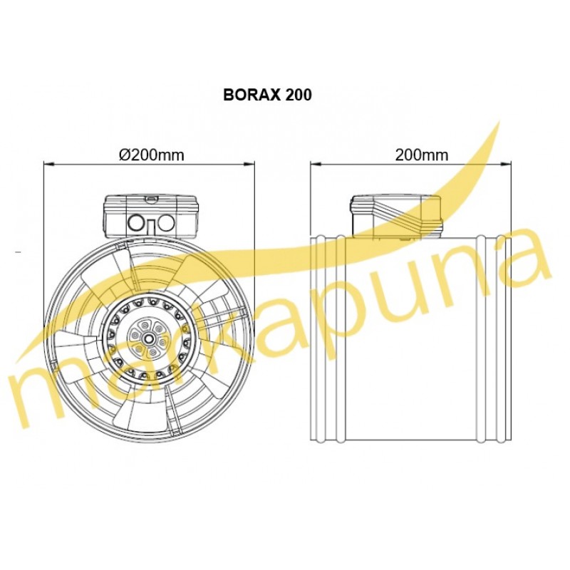 BVN Bahçıvan BORAX 200  20 cm 680 m³/h Aksiyel Kanal Tipi Fan