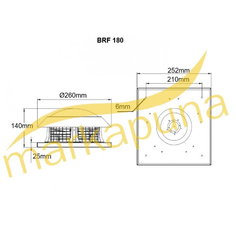 BVN Bahçıvan BRF 180 220 Volt Monofaze Yatay Atışlı 460 m³/h Radyal Çatı Fanı