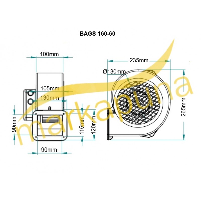 BAGS 160-60 Dıştan Rotorlu Alü. Gövdeli Salyangoz Fan |
