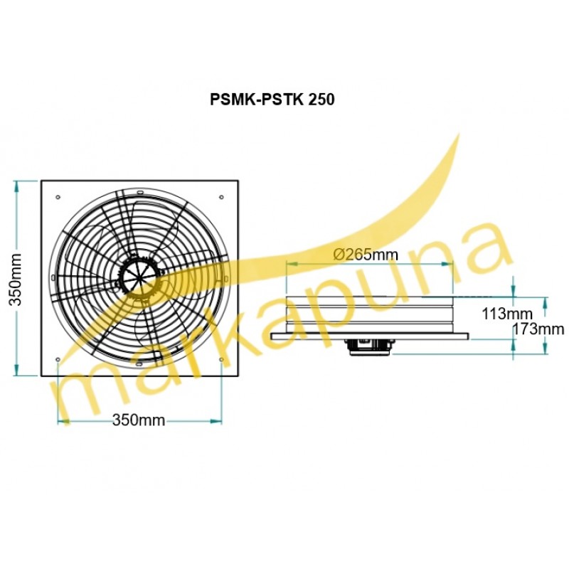 PSTK 250 Trifaze Kare Kasa Metal Pervane Aksiyal Fan |