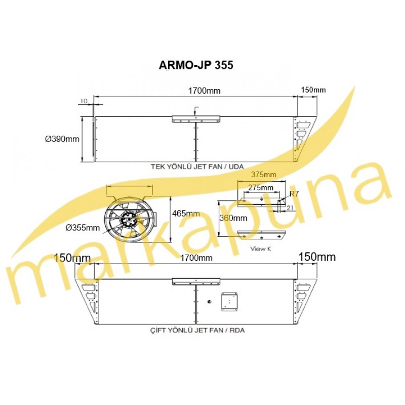 Bahçıvan Tek Yönlü Jet Duman Tahliye Fanı ARMO-JF-355 UDA