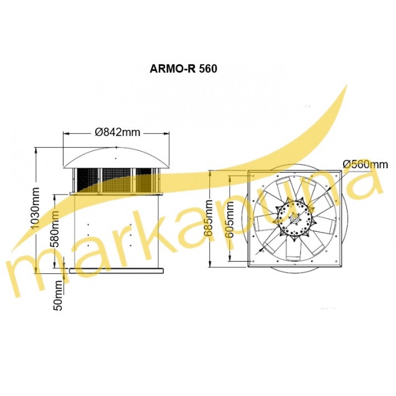 BVN Bahçıvan ARMO-R 560-6 / 1,10 4A Monofaze Çatı Tipi Duman Tahliye Fanı
