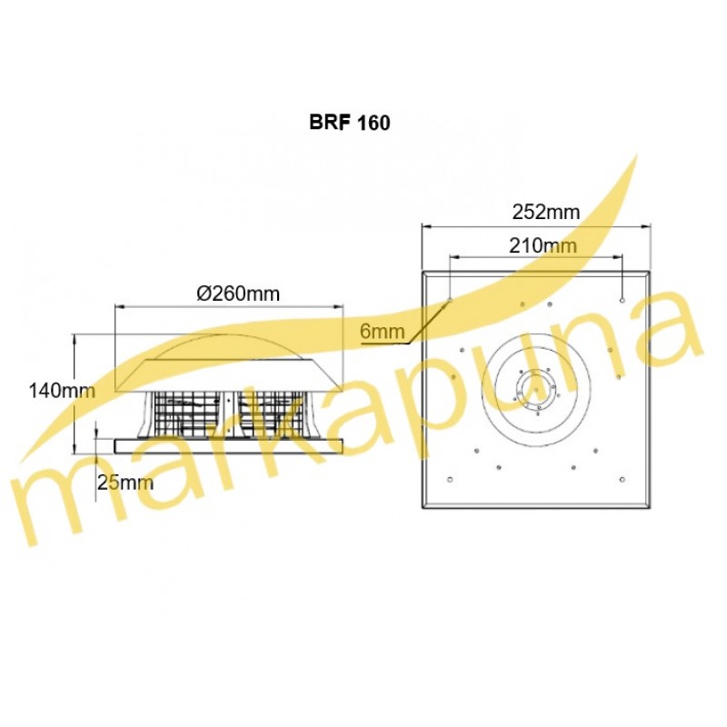 BVN Bahçıvan BRF 160 220 Volt Monofaze Yatay Atışlı 346 m³/h Radyal Çatı Fanı