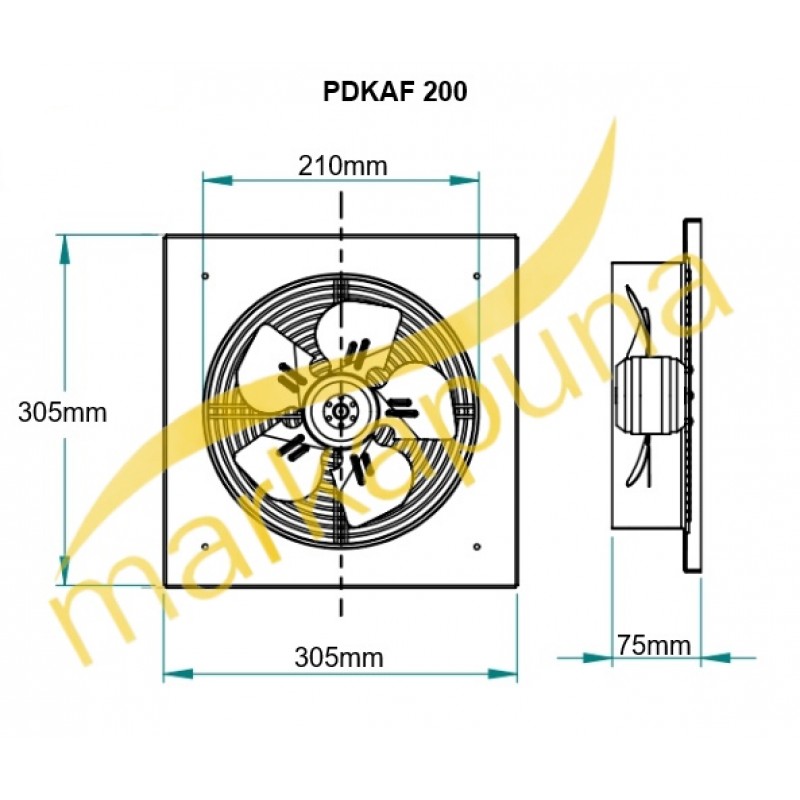 PDKAF 2M 200 Kare Kasa Dıştan Rotorlu Aksiyal Aspiratör |