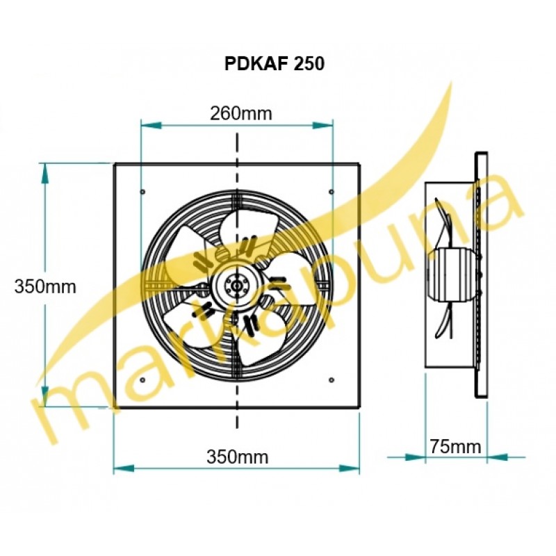 PDKAF 2M 250 Kare Kasa Dıştan Rotorlu Aksiyal Aspiratör |